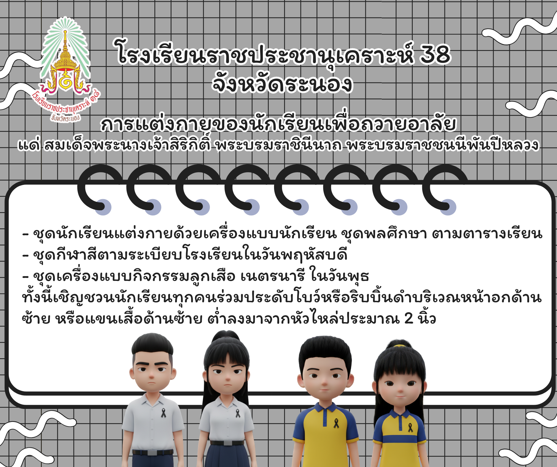 ข่าวประชาสัมพันธ์ > การแต่งกายของนักเรียนเพื่อถวายอาลัย